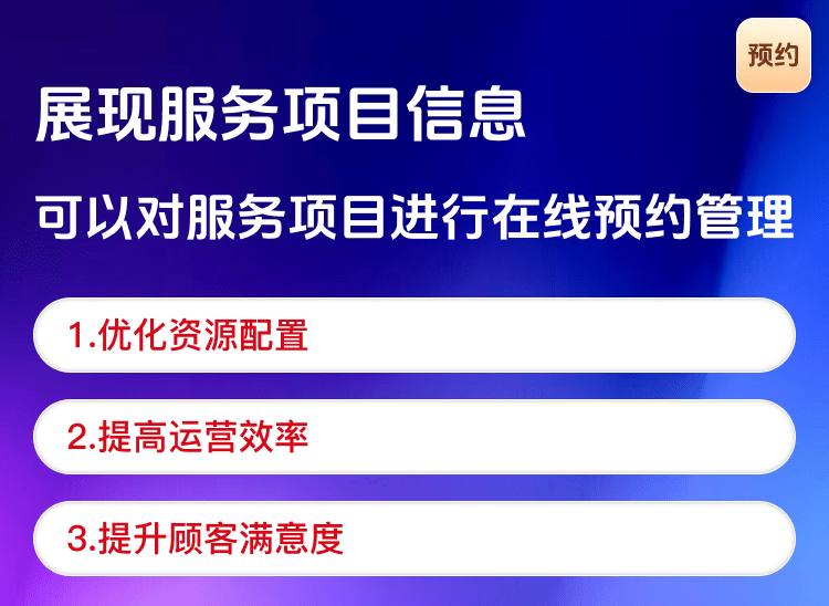 展现服务项目/服务人员的信息,并且可以对服务项目/人员进行在线预约管理