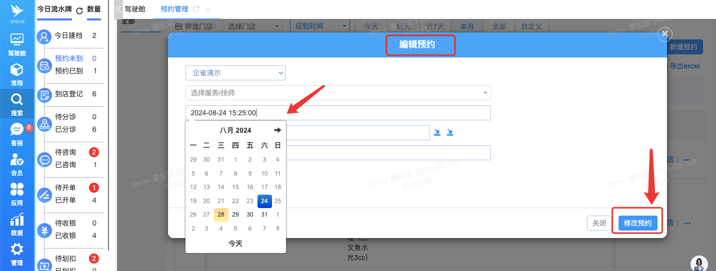 是员工后台预约,可以让给顾客创建预约的员工进行修改预约时间;