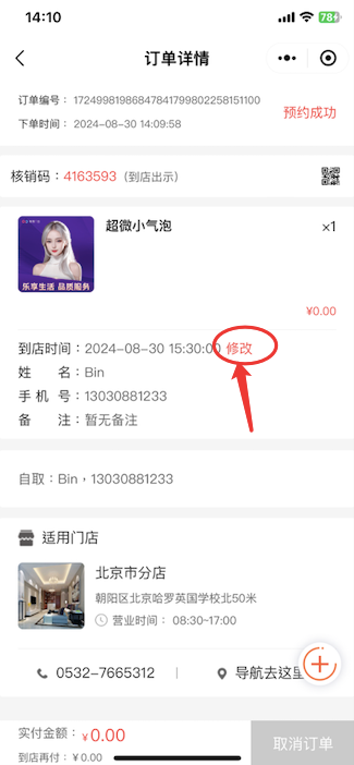 是顾客自助预约,可以让顾客在小程序的会员中心的预约订单进行修改预约时间;