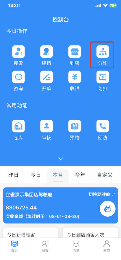 2通过手机下载“企雀助手”APP-上面今天操作里有“分诊”菜单;