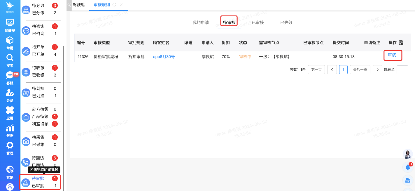 1通过电脑、或平板的谷歌浏览器登录企雀系统后台-今日流水牌-“待审批/已审批”;