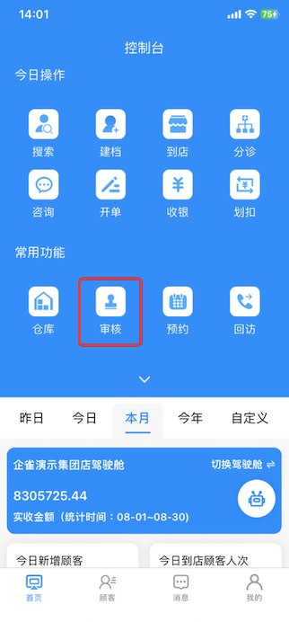 2通过手机下载“企雀助手”APP-上面今天操作里有“审批”菜单;