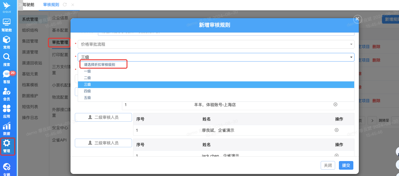 为了控制风险,从业务端发起价格或退款审批后,可以设置多人审批规则,通常包括部门主管、财务部门和经理的多级别审核。这种多级审核流程有助于确保决策的准确性和合规性,降低操作风险。