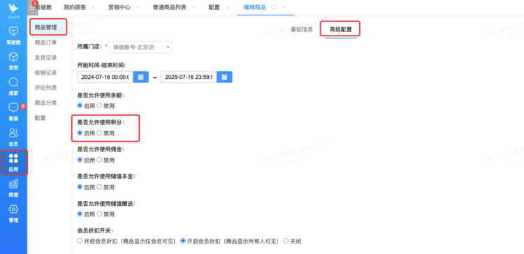 每个商品的高级配置页面也能独立控制是否允许使用积分购买的行为