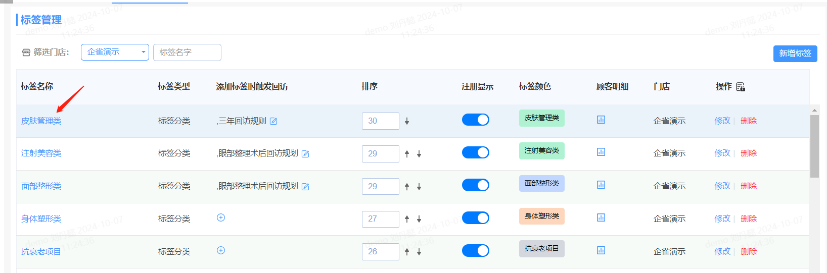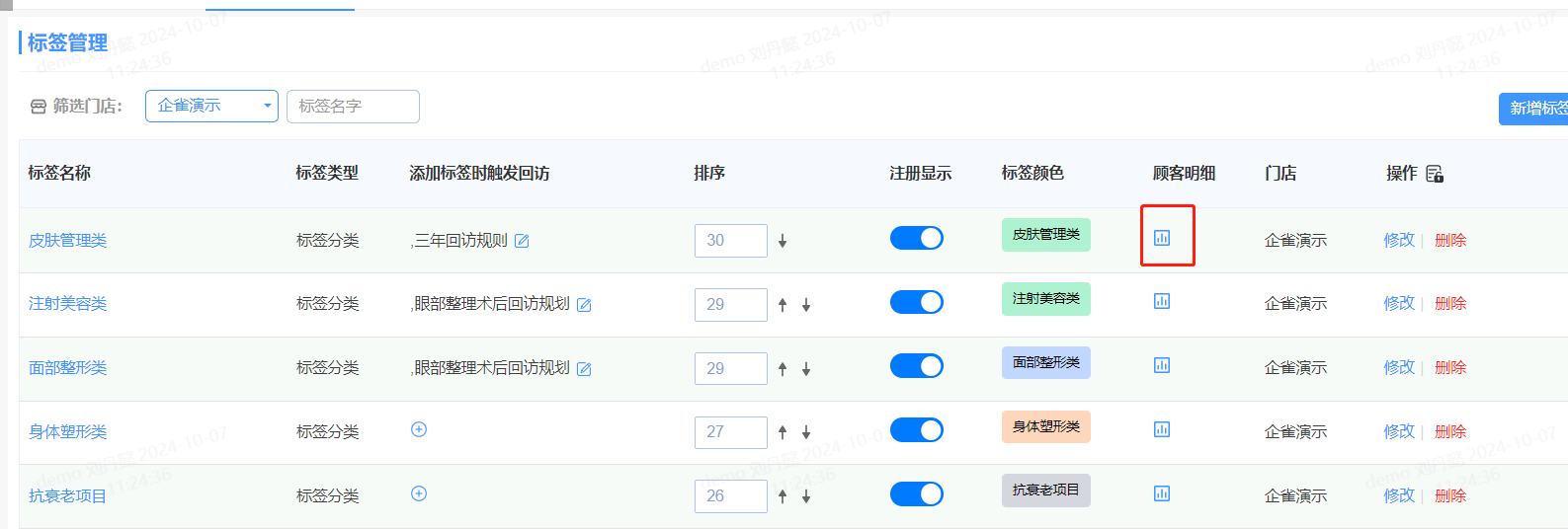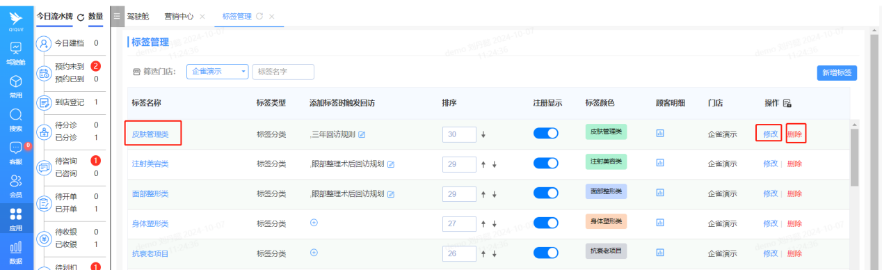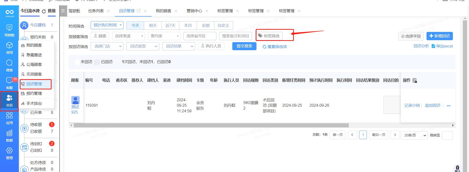 3、回访管理:可以根据客户标签筛选出对应的群体进行回访,优化回访模型。如根据顾客的项目恢复情况、满意度反馈等信息,及时提供必要的关怀和支持。
