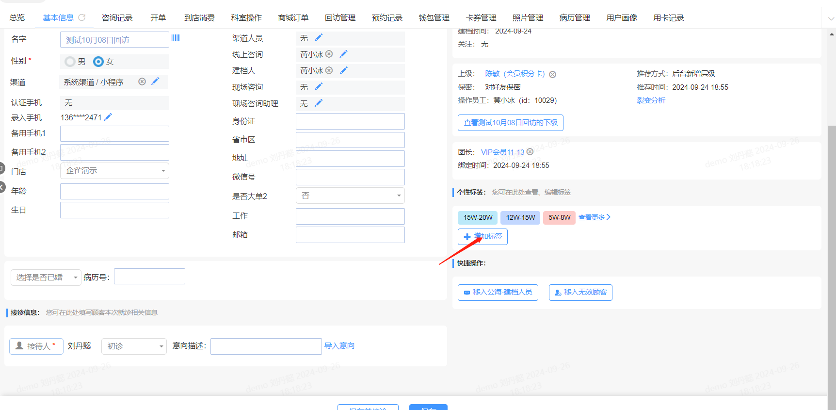 2、个人档案标签:通过分析顾客的标签信息,机构可以了解顾客在服务过程中的痛点和需求点,从而优化服务流程,提高服务效率和质量。