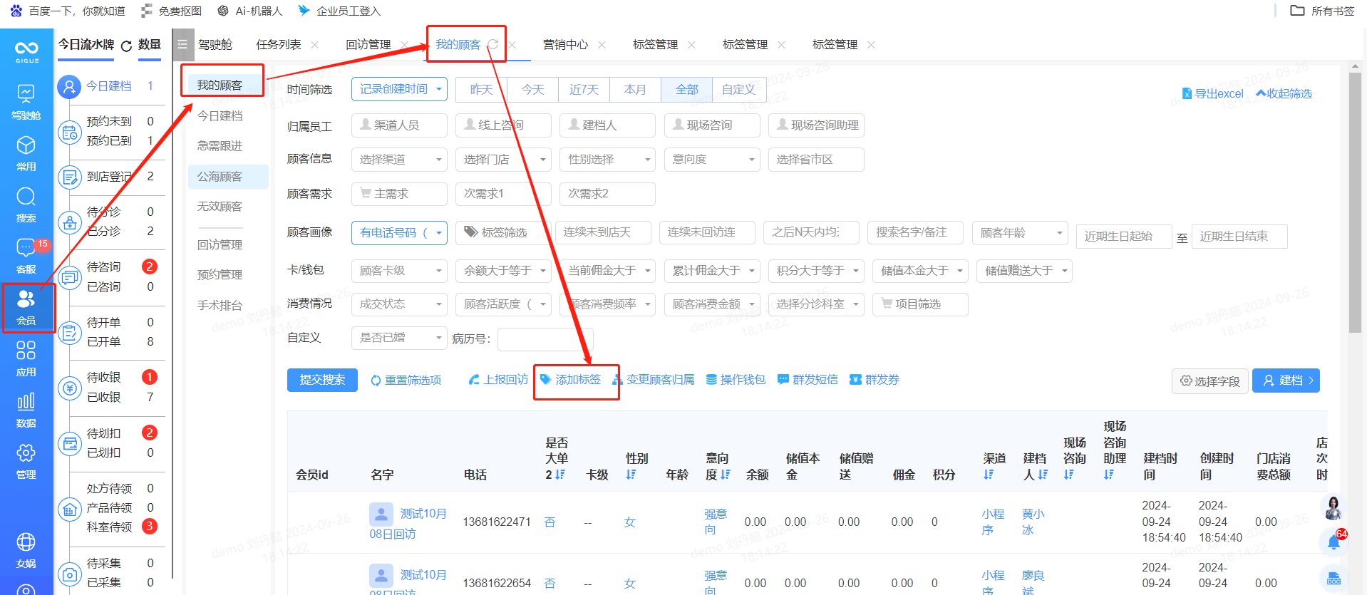 4、会员筛选:根据顾客的标签信息,机构可以实现精准推送,如向有特定需求的顾客推送相关的项目信息、优惠活动等。这种定向推送方式能够大大提高营销的有效性和转化率,减少不必要的营销投入。