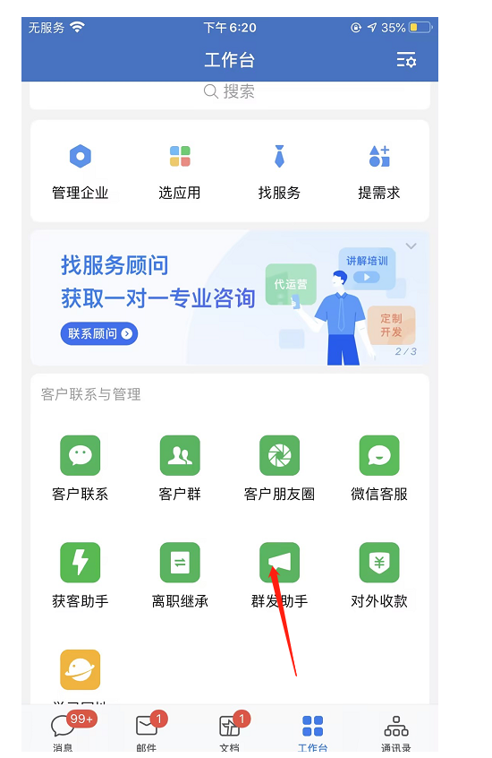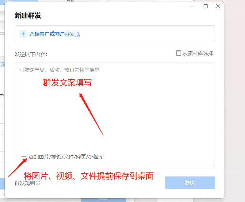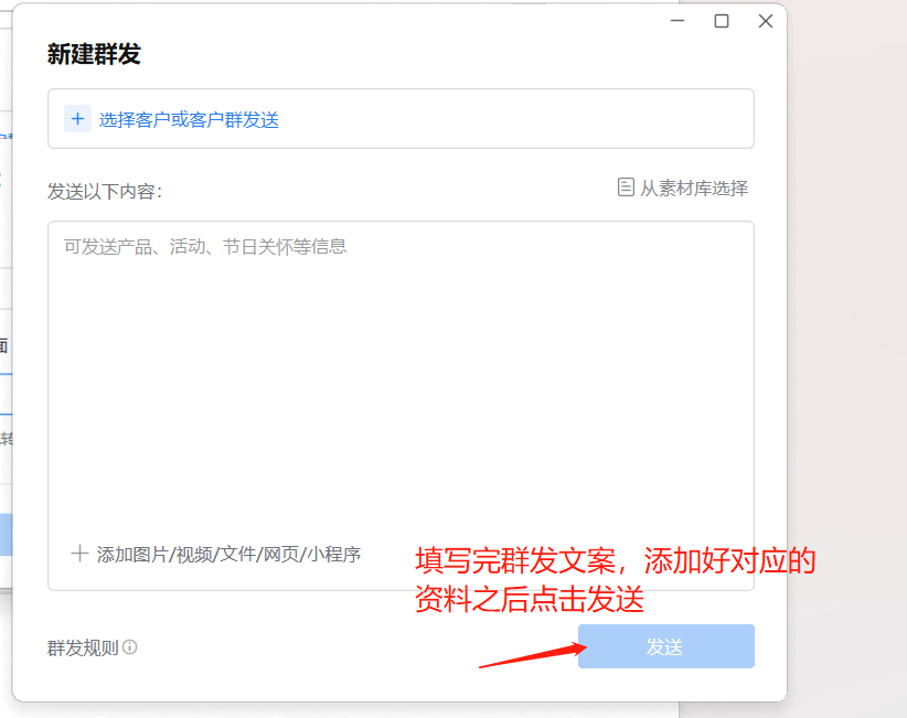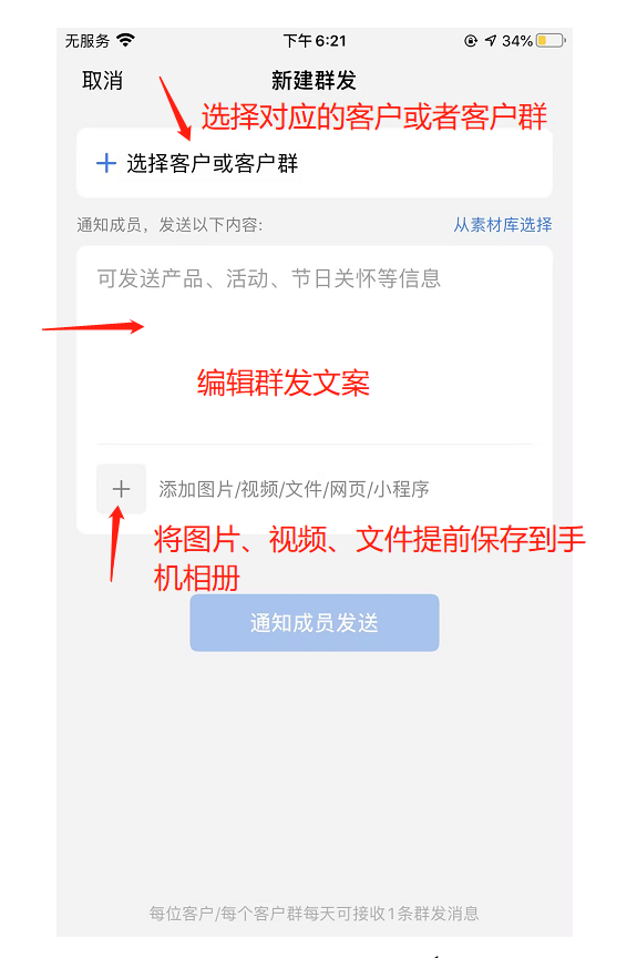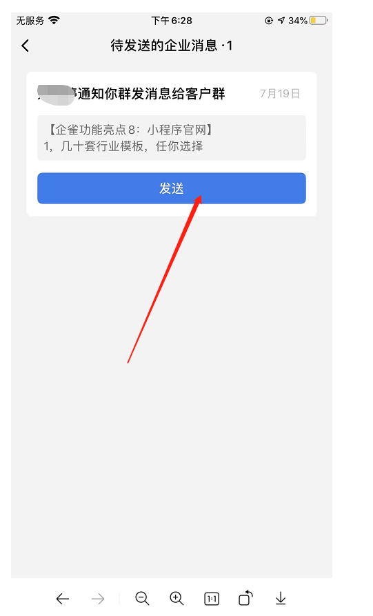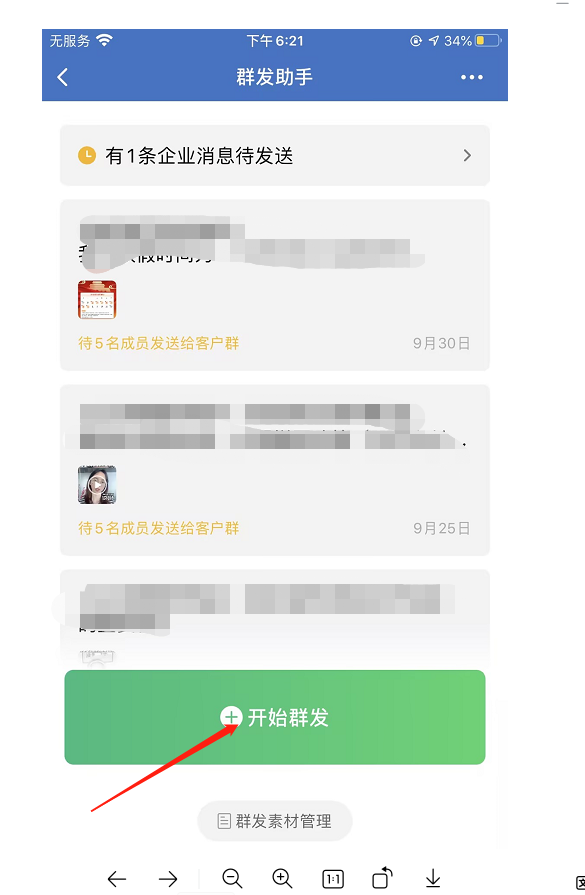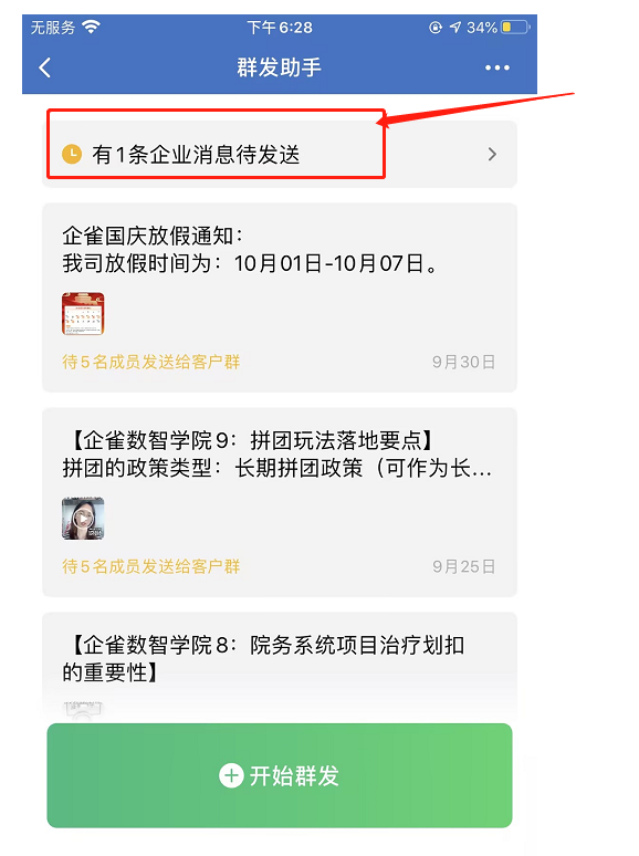 创建完成之后群主会在企业微信收到群发助手的通知,可同步进行群发。