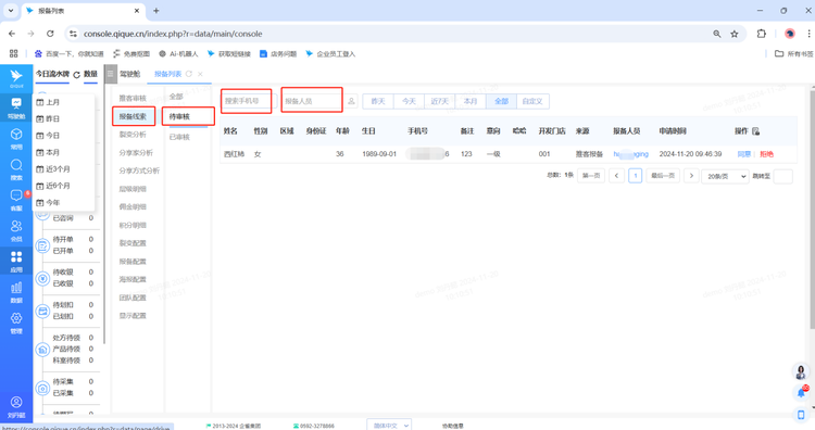 审核操作路径:应用--直客分销--报备线索--待审核