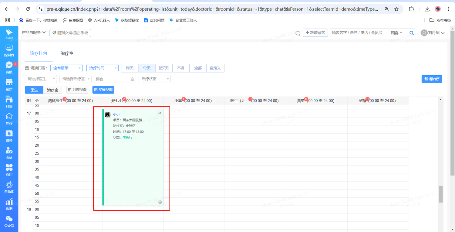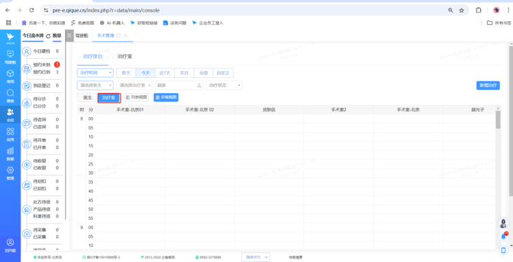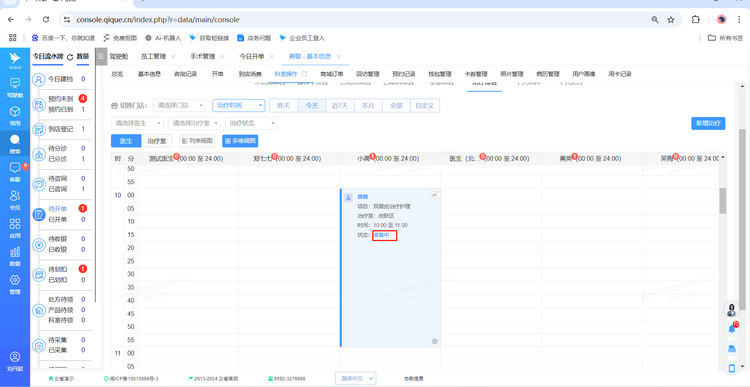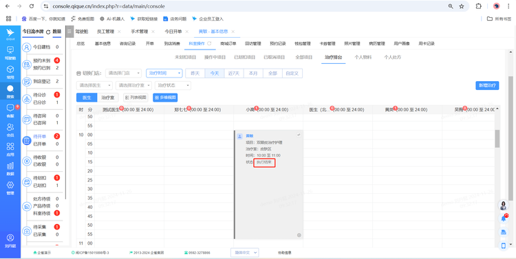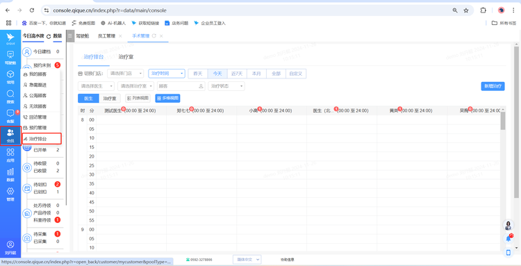 治疗排台是根据顾客在门店购买的项目需求和预约时间,合理安排治疗师(医生或美容师)和治疗室的一种管理方式。通过治疗排台,门店可以高效分配资源,确保顾客能够按时进行治疗,同时提升门店的运营效率和服务质量。