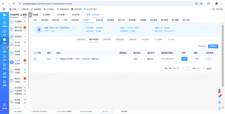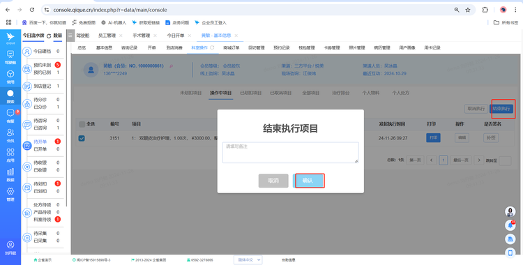 治疗排台对应顾客状态会自动更新为“执行结束”
